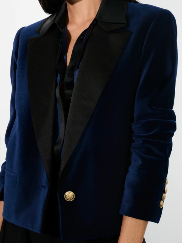 Women Devyn Velvet Blazer In Midnight Blue | Alice Olivia Blazers