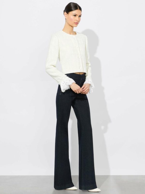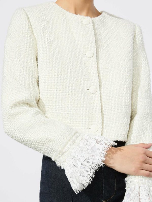 Millie is our take on the perfect boxy jacket, with a cropped fit, tweed construction, and feminine lace cuffs. We love it layered over a T-shirt as a way to dress up any and every day.