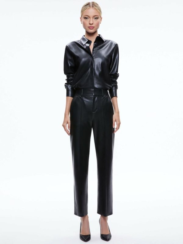 This cropped pant is the perfect everyday option and can take you from coffee to cocktails. It includes front seams, an ankle length, belt loops and the softest vegan leather.