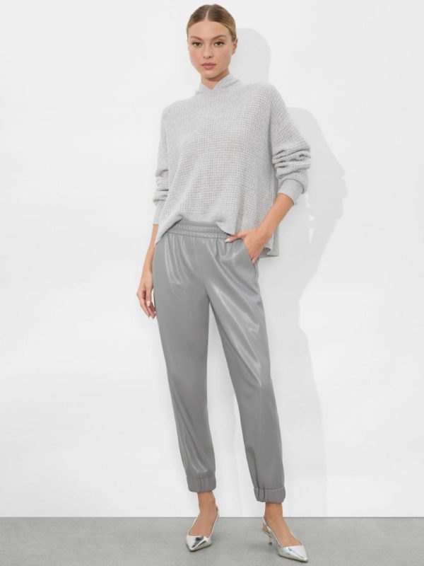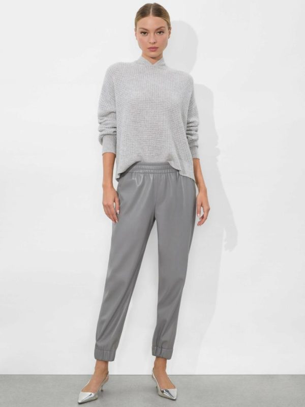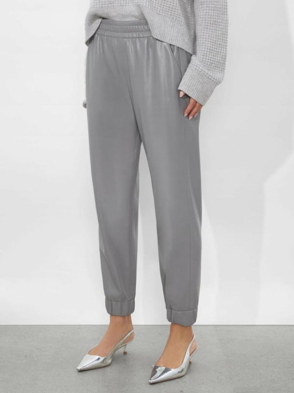 These vegan leather joggers are exactly what the modern woman-on-the-go needs. Designed for an easy fit with elasticized an waistband and cuffs, they’re made from 100% super-soft vegan leather. They have a low-rise but still retain their polish (not designed for a slouchy fit). Wear them with anything from sneakers and a hoodie to pumps and a button-down.
