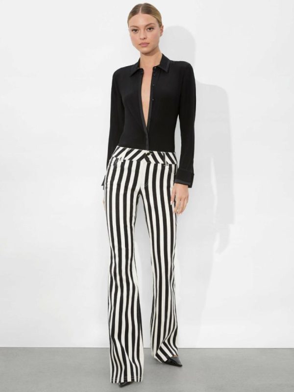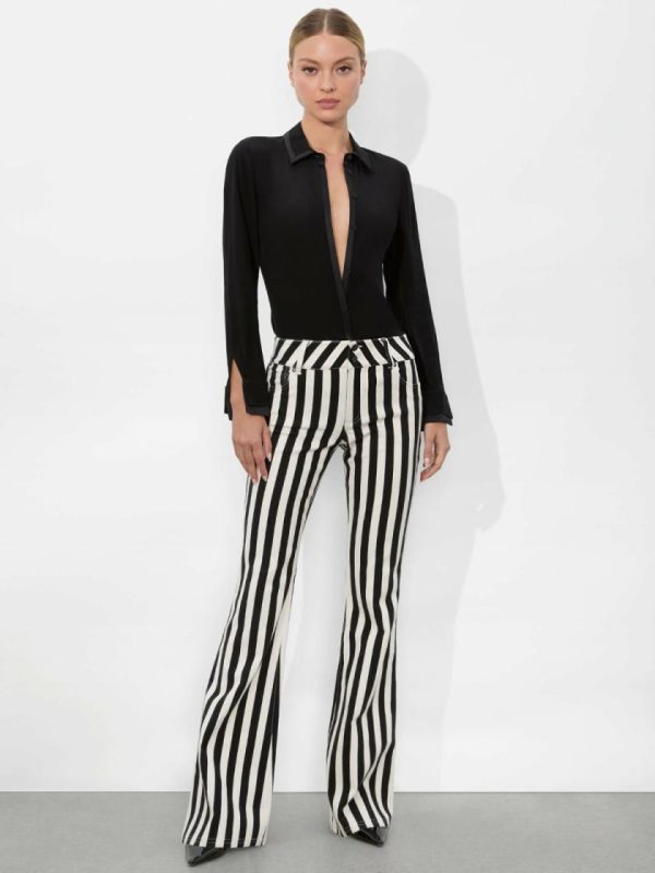 Women Stacey Low Rise Bell Jean In Positano Stripe Black | Alice Olivia Jeans